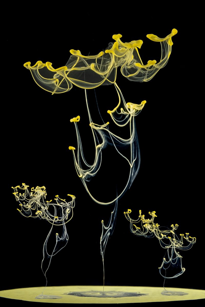 Zum erstellen dieser Bilder kommen bis zu 6 Blitze zum Einsatz. Gesteuert werden diese per Funkauslöser. Natürlich ist noch etwas mehr an Equipment erforderlich. Aber da soll jeder seine eigene Fantasie spielen lassen, und ein wenig Physik ist natürlich auch hilfreich.